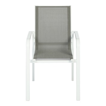 Légère et très solide, cette chaise Valencia blanche est une belle chaise en aluminium. L'assise et le dossier sont en textilène, très facile à entretenir. De plus, la chaise est empilable, ce qui lui permet de prendre peu de place dans votre abri ou rangement de jardin après l'été. Disponible également en anthracite.