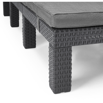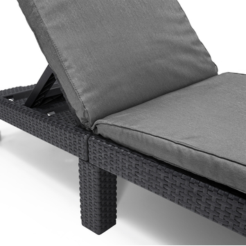La chaise longue Daytona d'Allibert est fabriquée à partir d’une structure en matière synthétique de couleur anthracite clair qui présente un aspect en osier tressé. La chaise longue offre un véritable confort qui n’est pas uniquement imputable au choix unique des matériaux, mais également à la présence d’un dossier réglable et du coussin de tête de couleur grise. Sans oublier l’atout supplémentaire : la chaise longue réglable en 4 positions qui s'intègre parfaitement à nos autres meubles de jardin en osier de la même couleur.