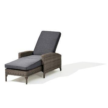 La chaise lounge Avignon est une vraie chaise de jardin avec un dossier et des accoudoirs particulièrement confortables. La chaise légère mais solide est fabriquée en osier de couleur brun-gris, avec des coussins de couleur anthracite. Également disponible sous forme de siège ‘ordinaire’, réglable ou comme élément supplémentaire pour le set lounge du même nom.