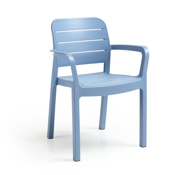 La chaise de jardin Tisara de couleur bleue présente un style moderne et gai. Parfaite pour votre jardin, votre terrasse ou balcon. En plastique, elle est empilable et se vend à petit prix. Disponible en d'autres coloris.