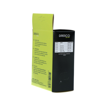 Chambre à air Dresco avec une haute résistance à la perforation. D'une élasticité supérieure, la chambre à air convient à plusieurs types de pneus. Valve Sclaverand (Presta/française) de 40 mm. Un produit qualitativement fiable qui reste plus longtemps à la pression désirée.