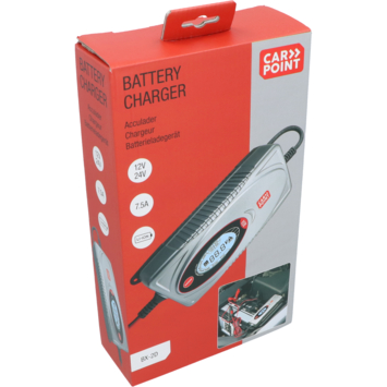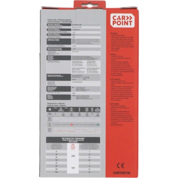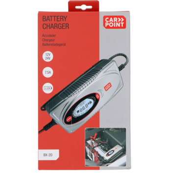 Ce chargeur de batterie Carpoint BX-2D convient pour charger en 12 et 24 volts avec des batteries plomb-acide rechargeables de 10 à 240 ampères et des batteries au lithium de 10 à 80 ampères. Le chargeur de batterie passe par un cycle de charge entièrement automatique en 8 étapes. Phase de diagnostic, vérifie l’état de la batterie et/ou si elle peut accepter la charge. Phase de récupération et de démarrage progressif, restaure les batteries fortement déchargées de plus de 2 volts en condition de charge faible ou en charge par impulsions. Phase de charge rapide, récupère les batteries fortement déchargées avec une tension de charge élevée. Phase en vrac, le courant de charge maximal de 80% de l’énergie est chargé. Phase d’absorption, charge jusqu’à ce que près de 100% soit atteint. Phase d’analyse, vérification de l’état de charge. Phase flottante, batterie complètement chargée et maintenue au niveau maximum avec un faible courant de charge. Courant de charge maximal 7,5 ampères.