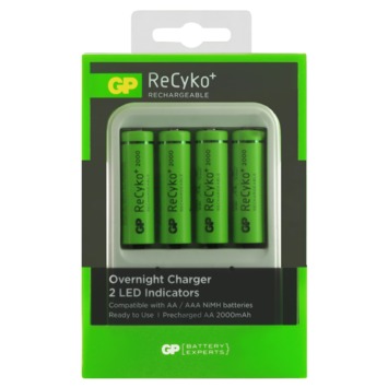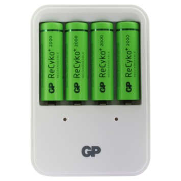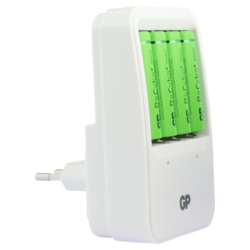 Si vous appréciez le plug & play, votre chargeur se transformera sans problème en PowerBank 420. À l’arrière du chargeur se trouve une fiche qu’il suffit de brancher dans une prise de courant. Convient pour les piles AA et AAA. Le chargeur possède deux canaux et deux témoins LED. Les piles se chargent toujours par deux. Vous pouvez donc charger simultanément deux ou quatre piles AA ou deux ou quatre piles AAA. Compact, le chargeur s’emporte aisément dans un sac à main ou un sac à dos. Les quatre piles AA de 2.000 mA fournies sont préchargées, et donc immédiatement utilisables. Les piles ReCyko+ de GP sont réutilisables minimum 300 fois et ont un faible taux d’autodéchargement. Cela signifie que lorsqu’elles restent inutilisées pendant un an, elles conservent encore 80% de leur capacité.