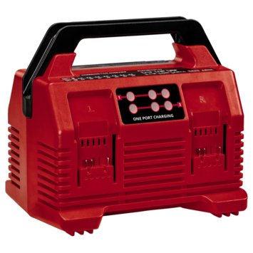 Avec le chargeur Power X-Quattrocharger 4 A 2x2 Einhell, rechargez encore plus rapidement 4 batteries Power X-Change. Une batterie pour tous les appareils : Les batteries Power X-Change sont compatibles avec tous les outils de bricolage et de jardinage de la puissante gamme Einhell du même nom. Ce chargeur universel peut être utilisé pour toutes les batteries Power X-Change. Les bénéfices pour le client sont évidents : Le système universel de batteries et chargeurs compatibles avec tous les appareils permet de réaliser des économies importantes à l’achat, de préserver l’environnement et de gagner en flexibilité pour les travaux dans la maison et au jardin. Le chargement simultané de deux batteries (1 batterie de chaque côté) économise de la place et assure un chargement rapide et une grande disponibilité des batteries sans devoir interrompre les travaux. Une fois que deux batteries (1 de chaque côté) sont entièrement chargées, le chargement des deux suivantes démarre automatiquement. La poignée intégrée permet de transporter 4 batteries simplement et sans effort. Grâce à son faible poids, le Quattrocharger est idéal pour une utilisation mobile. L’appareil comprend quatre emplacements pour batterie qui sont reliés au même connecteur, offrant ainsi un gain de place, aussi bien à l’établi que sur le chantier. La technologie de charge rapide réduit encore les temps de charge, et le système de gestion de charge intelligent contrôle la batterie en continu pour un processus de charge optimal et une sécurité maximale. Le mode Refresh permet de réactiver les batteries en état de décharge profonde. L’indicateur LED à 6 positions permet de suivre l’état de chaque batterie.