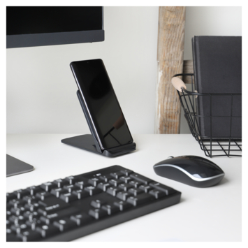 Le chargeur est un modèle debout, super pratique sur votre bureau ou votre table de chevet pour vérifier vos notifications sans avoir à retirer votre téléphone du chargeur.