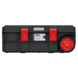Le chariot est équipé de roues en élastomère pour un transport stable, ainsi qu'un couvercle avec une règle intégrée qui fait également office de surface de travail avec une capacité de charge allant jusqu'à 120 kg. Le boîtier robuste en polymères renforcés, associé à des charnières métalliques et un système de fermeture étanche, le rend résistant à la poussière et à l'eau.