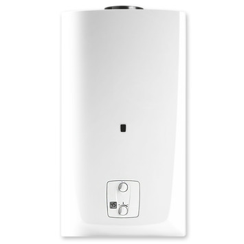 Le chauffe-eau à suspendre Renova de Bulex est en acier blanc et cuivre. Il fonctionne au gaz. Sa capacité est de 14 litres pour une témpérature maximale de 65°C. Il dispose d'un raccord de pression, d'un allumage électronique et d'une veilleuse. Facile à régler, bien isolé.