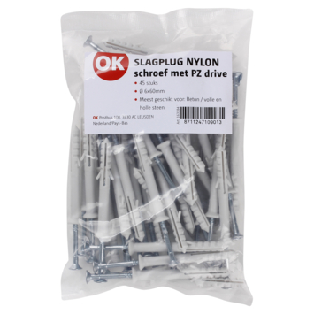 Cheville à clou OK 6x60mm/ 3,7x65mm 45 pièces
