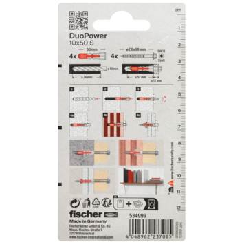 Cheville avec vis hexagonale Fischer DuoPower 10x50 mm 4 pièces