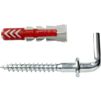 La cheville Duopower 6x30mm avec vis moletée convient à la fois à l'installation préalable et à l'installation traversante. Plus de matière dans la cheville pour encore plus de répartition et une capacité de charge encore plus élevée. La combinaison d'un plastique dur et souple garantit une facilité d'utilisation optimale, une installation très facile et, de plus, un retour clair lorsque la vis est correctement placée. Convient pour les vis à bois, à panneaux de particules et à suspension. Longueur de vis = longueur de cheville + épaisseur de fixation + 1x diamètre de vis. Dans le cas d'un matériau en feuille, la partie lisse de la vis ne doit pas être plus longue que l'épaisseur de la fixation. L'association de 2 matériaux et de 3 principes de fonctionnement fait de DUOPOWER la cheville adaptée à toutes les circonstances. La cheville active le principe de fonctionnement optimal - étalement, pliage, nouage - en fonction du support. Meilleur retour possible de la cheville, cela se ressent clairement lorsque la vis est bien serrée. La cheville courte et compacte signifie un temps de perçage minimal et donc une économie de matériel et de temps. Le collier mince empêche la cheville de disparaître dans le trou de forage lorsqu'elle est utilisée dans des murs creux, tout en permettant une installation traversante. Les ailes anti-rotation dentées empêchent la cheville de tourner dans le trou de forage lors de l'installation. En emballage de 6 pièces.