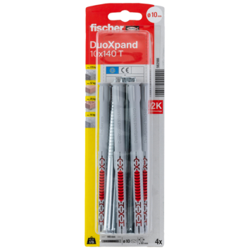 La cheville rallongée fischer DuoXpand avec deux profondeurs d'ancrage avec la vis à tête fraisée fischer est agréée pour la fixation multiple d‘applications non structurelles dans tous les matériaux de construction (béton, la maçonnerie pleine et creuse et le béton cellulaire). En raison de sa géométrie lamellaire spéciale et de la combinaison de matières, la cheville s'expanse de manière optimale et en douceur dans le matériau de construction évitant ainsi d’endommager les parois des matériaux creux et permettant un ancrage près du bord. La cheville DuoXpand avec vis à tête fraisée est particulièrement adaptée à la fixation d'éléments en bois dans le béton et la maçonnerie.