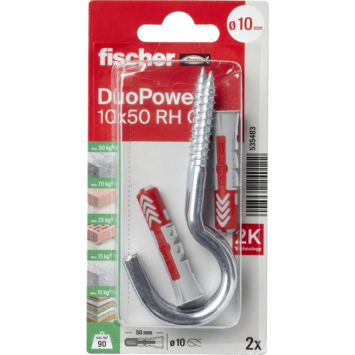 Cheville universelle avec grand crochet Fischer DuoPower 10x50 mm 2 pièces