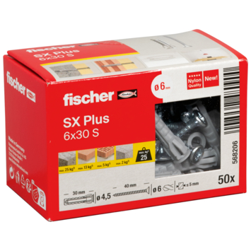 Cheville + vis Fischer SX Plus 6x30 mm 50 pièces