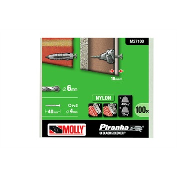 Chevilles nylon Molly + vis 6x30 mm 100 pièces
