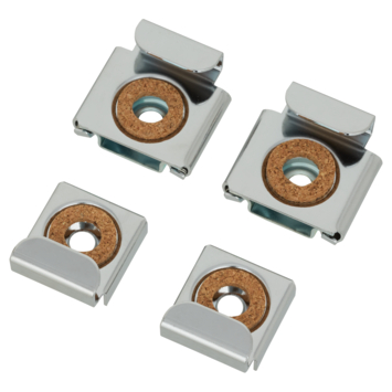 Le kit de fixation pour miroir Haceka métal 4 pièces convient pour des miroirs carrés de 4 à 6 mm d’épaisseur. Les 2 clips métalliques porteuses peuvent supporter ensembles un poids allant jusqu'à 4 kg.