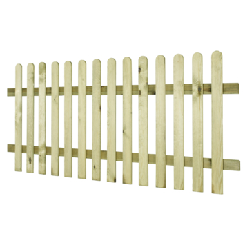 Cette clôture droite est composée de 14 planches de pin fixées avec des clous. Le bois a été imprégné, lui conférant une durée de vie estimée d'environ 10 à 15 ans. Cette clôture peut être utilisée comme cloison pour votre jardin de devant ou votre terrasse, par exemple.
