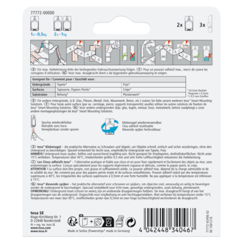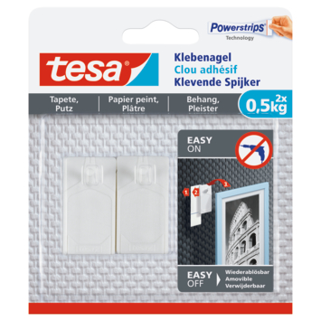Les clous adhésifs Tesa papier peint et plâtre 0,5 kg 2 pièces et les bandes adhésives fournies ont été spécialement développés pour fixer facilement des objets avec une adhérence fiable sur des surfaces inégales et sensibles. Les clous adhésifs ont une capacité de charge maximale de 0,5 kg par clou. Tesa clous adhésifs papier peint et plâtre 0,5 kg 2 pièces sont un moyen pratique d'accrocher des peintures ou des décorations sans causer de dommages. Grâce à la technologie des barrettes d'alimentation, elles sont super faciles à utiliser et peuvent être retirées sans laisser de trace. Vous pouvez réutiliser le clou adhésif avec une nouvelle bande adhésive.