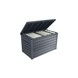 Lorsque c'en est fini du beau temps, rangez vos coussins dans un coffre à coussins qui se marie bien avec le reste de votre mobilier de jardin. Chez GAMMA, vous avez le choix, comme ce coffre imperméable Ontario, avec un motif bois de couleur anthracite. Dimensions: 147 cm de long, 83 cm de large et 86 cm de haut. Volume 870 litres.