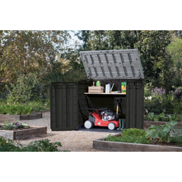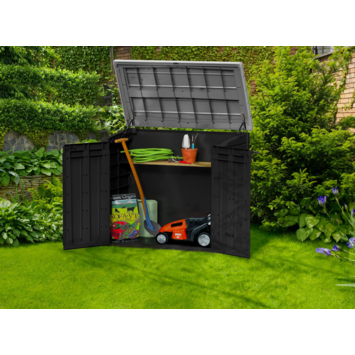 Le coffre de jardin Store-It-Out Max : une solution de rangement robuste, pratique et ultra polyvalente. Facile à monter et à manipuler, ce modèle emblématique séduit par sa grande capacité de 1200 litres, idéale pour stocker tout ce dont vous avez besoin en extérieur : barbecue, tondeuse, mobilier de jardin et bien plus encore.