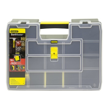 Prima opbergbox met uitneembare scheidingen. Doos is vrij groot en lekker diep, ook geschikt voor iets groters als schroefjes.