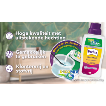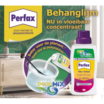 La colle Perfax decomix est un concentré liquide qu'il suffit de mélanger avec de l'eau. Prêt à l'emploi en 2 minutes et suffisant pour environ 5 rouleaux de papier peint ou 30m².