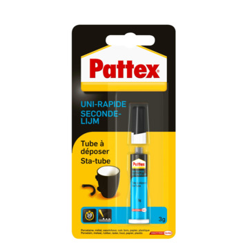 Pattex propose des colles pour toutes sortes de bricolages. Le 'tube à déposer' uni-rapide (3 g) est facile à doser. Convient pour les surfaces et pièces de petites tailles. Respectueux de l'environnement, sans solvant, adhère fortement en 10 secondes.
