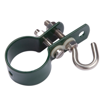 Collier de fixation des jambes de force. Vert, recouvert d’une couche d’époxy, sur acier galvanisé. Boulon + écrou en acier inoxydable inclus.