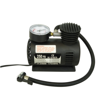 Mini compresseur d'air Carpoint haute puissance avec marquage CE. En raison de sa plage élevée, 17 bars, ce compresseur peut être utilisé pour les voitures, les vélos, les matelas pneumatiques, les ballons de football, les bateaux, etc. Le compresseur d'air est facile à connecter à l'allume-cigare et fonctionne sur 12V.