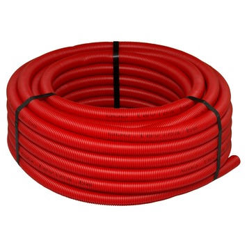 Le Superpipe rouge est un 'tuyau dans un tuyau' : une conduite pour eau chaude, protégée par une enveloppe. Levica Superpipe est une conduite flexible permettant le transport d'eau potable, de pluie, pour radiateur et chauffage par le sol. Disponible en diverses longueurs et épaisseurs. Cette conduite rouge mesure 25 m de long et 20 mm de diamètre.