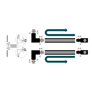 - Relie deux sections de rail à un angle de 90 degrés pour une configuration en L