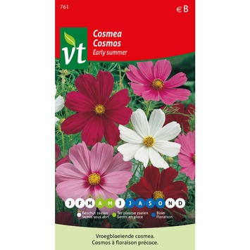 Fan de jardinage ? Chez GAMMA, vous n'allez pas manquer de trouver votre bonheur : des semences aux potagers sur pieds. Parmi ces semences, il y a celles de cosmos Early summer. À semer de préférence d'avril à mai.