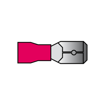 Cosse de câble à fiche plate isolée Carpoint rouge 540 aux dimensions 6,3x0,8mm. Convient pour une section de fil de 0,5-1,5 mm². Longueur 20,7 mm. 10 pièces sous blister.