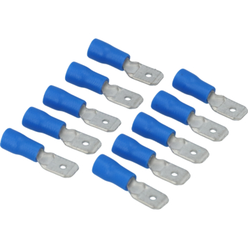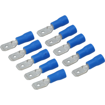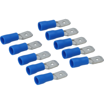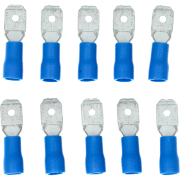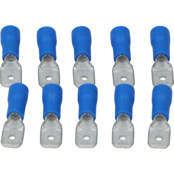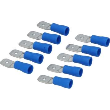 Cosse de câble à fiche plate isolée bleue Carpoint 740 aux dimensions 6,3x0,8 mm. Convient pour une section de fil de 1,5-2,5 mm². Longueur 21,3 mm. 10 pièces sous blister.