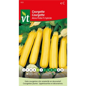 Fan de jardinage ? Chez GAMMA, vous n'allez pas manquer de trouver votre bonheur : des semences aux potagers sur pieds. Parmi ces semences, il y a celles de courgettes jaunes. La courgette Atena Polka F1 hybride est appétissante et décorative. À semer de préférence d'avril à juin.