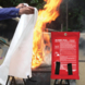 La couverture anti-feu est à usage unique et ne convient pas aux feux électriques, aux flammes de poêle ou aux feux d'huile et de graisse.