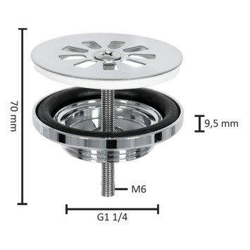 Cette crépine pour lave-mains en laiton finition chromée a un diamètre de 65 mm et une hauteur de 70 mm et dispose d'un filetage M6. Les joints d'étanchéité indispensables sont fournis. Avez-vous déjà choisi la couleur de vos accessoires ?