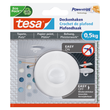 Avec ce crochet de plafond adhésif Tesa, vous pouvez facilement accrocher un crochet à votre plafond sans percer. Ce crochet de plafond adhésif peut être utilisé sur du papier peint et du plâtre. De cette façon, vous n'avez pas besoin de percer et vous travaillez rapidement, proprement et sans endommager la surface. Le paquet contient 1 crochet avec une capacité de charge maximale de 0,5 kg. Vous cherchez un autre clou adhésif de Tesa ? GAMMA a également d'autres variantes dans sa gamme.