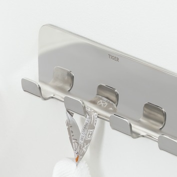 Le Tiger Hook Colar 4 pièces Chrome est fabriqué en acier inoxydable poli. Le crochet est équipé d'un ruban adhésif double face puissant, ce qui facilite le montage sur toute surface lisse et solide. La série Colar comprend également un crochet double, mais aussi un grand nombre d'accessoires supplémentaires pour la salle de bain et les toilettes dans le même style. Tous les articles de la série Colar sont également disponibles en acier inoxydable brossé.