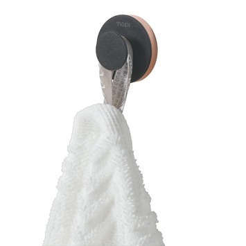 Le crochet de la série Tiger Urban a une finition noire mate et est livré avec deux anneaux décoratifs. Les anneaux décoratifs, de couleur cuivre et gris, permettent d'ajouter un subtil accent de couleur. Il est également possible de monter le crochet sans l'anneau décoratif, ce qui permet d'adapter très facilement le produit au style souhaité. Le crochet est équipé d'un ruban adhésif double face puissant, ce qui facilite le montage sur toute surface lisse et solide. La série Urban comprend également un grand crochet, mais aussi un grand nombre d'accessoires supplémentaires pour la salle de bain et les toilettes. Tous dans le même style. Les articles de la série sont également disponibles en blanc mat, qui comprend bien sûr également divers anneaux décoratifs.