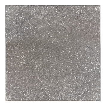 Dalle de terrasse 60x60x3,9 cm en béton avec revêtement décoratif en granulats anthracite inaltérables. La dalle peut être posée dans du stabilisé ou du mortier, mais aussi sur des plots.