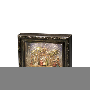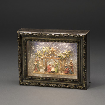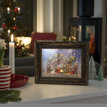 Créez une chaleureuse ambiance de Noël grâce aux décorations GAMMA. Ce cadre de neige rempli d’eau avec une crèche de Noël et 2 LED lumière blanche chaude mettra immédiatement une douce ambiance dans la maison. Il fonctionne avec 4 piles AA et mesure 27,5 cm de large x 23 cm de haut. Il possède une minuterie de 5 heures, délai après lequel il s’éteint automatiquement.