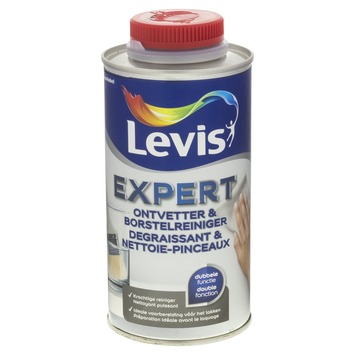 Le nettoyant et dégraissant pour pinceaux (0,5 litre) de Levis est un nettoyant multifonctionnel et puissant avec lequel vous pouvez non seulement nettoyer vos pinceaux, mais aussi la surface. En bref : la préparation idéale pour la peinture.