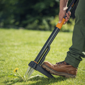 L'extracteur de mauvaises herbes Fiskars Xact est une innovation unique pour éliminer les pissenlits en particulier rapidement et de manière écologique. L'extracteur de mauvaises herbes est facile et confortable à utiliser. Il permet d'éliminer les mauvaises herbes en position debout et debout. Les bras de préhension en acier inoxydable qui s'enfoncent profondément dans le sol attrapent la racine de la mauvaise herbe dans différentes directions et la retirent du sol - aucun agent de suppression n'est plus nécessaire. En tirant sur la poignée confortable, les mauvaises herbes sont complètement retirées des bras de préhension. La conception ergonomique maintient le poignet dans une position neutre, ce qui rend l'extracteur de mauvaises herbes très confortable à utiliser.Élimination facile des mauvaises herbes dans une position de travail confortable.Particulièrement adapté aux pissenlits. Attrape la racine dans différentes directions grâce à des bras de préhension qui s'enfoncent profondément dans le sol.Élimination facile des mauvaises herbes en une seule traction sur la poignée confortable.L'arrache-herbe est en FiberComp : polyamide renforcé de fibre de verre, très léger et extrêmement résistant.