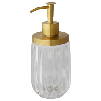 Ce distributeur de savon Atlantic est fabriqué en verre translucide à facettes. Un peu aristocratique, encore accentué par la pompe manuelle en laiton brossé, il s' accorde à tout intérieur plus classique. Le réservoir se recharge facilement.