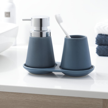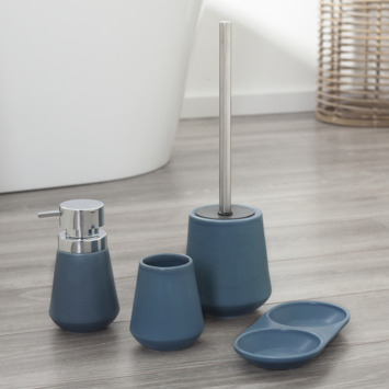 La pompe du distributeur de savon est en finition chromée très tendance et le réservoir en céramique bleu mat se recharge facilement. Pour un effet tout à fait splendide, créez un ensemble avec le porte-savon et le gobelet de la même série. Également disponible en vert mat.