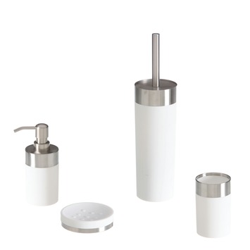 Mooi design, past perfect bij de zwarte uitvoering die ik tegelijkertijd kocht. Wordt gebruikt voor handzeep. Pompt goed en drupt niet.