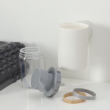 Le Tiger Soap Dispenser Urban Hanging White a une couleur blanc mat et gris et est fourni avec deux anneaux décoratifs. Les anneaux décoratifs, de couleur chêne clair et gris, permettent d'ajouter un subtil accent de couleur. Il est également possible de monter le distributeur de savon sans l'anneau décoratif, ce qui permet d'adapter très facilement le produit au style souhaité. Lors du montage de l'article, une plaque murale est utilisée, de sorte que les matériaux de montage fournis disparaissent de la vue. La série Urban comprend également une version autonome du distributeur de savon, mais également un grand nombre d'accessoires supplémentaires pour la salle de bain et les toilettes. Tous dans le même style. Les articles de la série sont également disponibles en noir mat, qui comprend bien sûr également divers anneaux décoratifs. Le distributeur de savon convient au montage avec TigerFix type 1, avec lequel les accessoires peuvent être fixés rapidement et facilement sur une surface lisse et dure au moyen d'un système adhésif breveté. Aucun perçage n'est nécessaire et les accessoires sont faciles à retirer sans laisser de résidus sur la surface. TigerFix est disponible séparément.