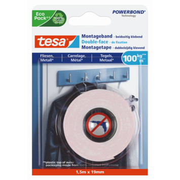 Le ruban de montage Tesa carrelage et métal 100 kg/m est notre ruban de montage le plus résistant et a été spécialement développé pour une adhérence permanente et solide sur des surfaces dures et lisses telles que les carreaux, le métal et la plupart des surfaces en plastique. Le ruban compense même les petites irrégularités. Le ruban est idéal pour le montage permanent d'objets jusqu'à 10 mm d'épaisseur et pesant jusqu'à 6 kg et l'application sans clous ni vis. Dans des conditions optimales, ce ruban a une capacité de charge allant jusqu'à 10 kg par ruban de 10 cm. Il est simple et pratique à utiliser et assure un collage fiable.
