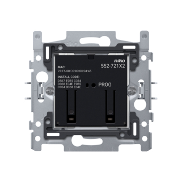 Le double interrupteur Zigbee® connecté est doté de deux contacts de commutation permettant de changer l'éclairage. Il contient un émetteur et un récepteur qui peuvent communiquer sans fil avec le hub intelligent sans fil de Niko Home Control (552-00001). Vous pouvez utiliser le double interrupteur connecté pour remplacer un interrupteur classique. Il est équipé de deux terminaux d'extension de sorte que, en combinaison avec un bouton-poussoir classique, il peut facilement remplacer l'interrupteur permutateur ou multivoie. Le double interrupteur connecté peut commuter ses propres contacts. Une fois que le hub intelligent sans fil pour Niko Home Control a été ajouté, vous pouvez configurer des fonctionnalités additionnelles avec le logiciel de programmation Niko Home Control. De cette façon, il est possible de les relier dans une ambiance ou une action tout éteint, et bien plus encore. Cet appareil peut également être utilisé dans une installation à câblage bus en combinaison avec le pont intelligent sans fil pour Niko Home Control (550-00640). Il est possible de déconnecter la commande de ses contacts intégrés. Ainsi, vous avez toute latitude pour configurer séparément le contact de commutation et les commandes via le logiciel de programmation.