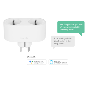 La prise intelligente Hombli double rend vos appareils électriques intelligents en un clin d'œil ! Avec l'application mobile gratuite, vous pouvez facilement connecter la prise intelligente à votre réseau Wi-Fi et contrôler vos appareils intelligents depuis n'importe où avec votre smartphone. Fonctionne également avec la commande vocale via Google Home (Mini) et Amazon Alexa.